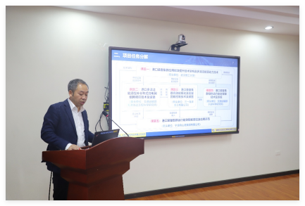 会议上半场由武汉理工大学熊远禄副处长主持,介绍了项目情况以及参会领导和专家。胡剑教授代表牵头单位致辞,承诺将严格履行主体责任,统筹资源保障、强化过程管理,确保项目高质量推进。交通运输部科技司张鹏浩主任代表主管部门讲话,强调项目对港口绿色低碳转型的重要意义,要求项目组聚焦核心技术突破,做好与行业需求的衔接。