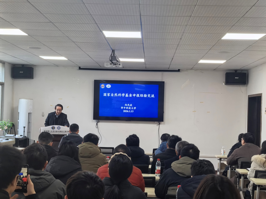 为扎实推进2026年度国家自然科学基金项目申报工作,提高项目书撰写质量与申报竞争力,帮助教师精准把握申报政策、攻克撰写难点、规避常见误区,1月13日学院特邀华中科技大学博士生导师向先波教授作国家自然科学基金申报经验交流专题辅导讲座。会议由副院长欧阳武主持,学院各系(中心)主任、副主任,院内基金辅导组成员及2026年拟申报国家自科基金老师参会。