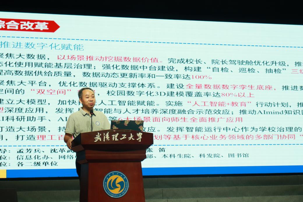 会上,院长袁成清传达学习了杨宗凯校长《进一步全面深化综合改革 持续推动学校高质量发展》的讲话精神,并对学院下半年重点工作作了详细部署和安排。他表示,在学校全面深化综合改革的背景下,希望全院教职工齐心协力,超前识变、科学应变、主动求变,围绕学校和学院发展目标,扬优势、补短板、强弱项,争取以优异成绩完成今年发展任务,向即将到来的新中国75周年华诞献礼!