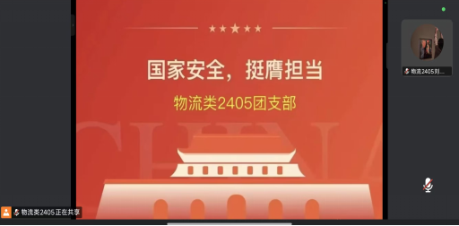 今年是国家安全法颁布施行10周年,为了增强同学们的国家安全意识和维护国家安全的责任感,在第十个全民国家安全教育日来临之际,物流类2405团支部于4月20日晚在线上开展了“国家安全青春挺膺”主题团日活动。会议由刘开远主持,物流类2405团支部全体团员共同参会。