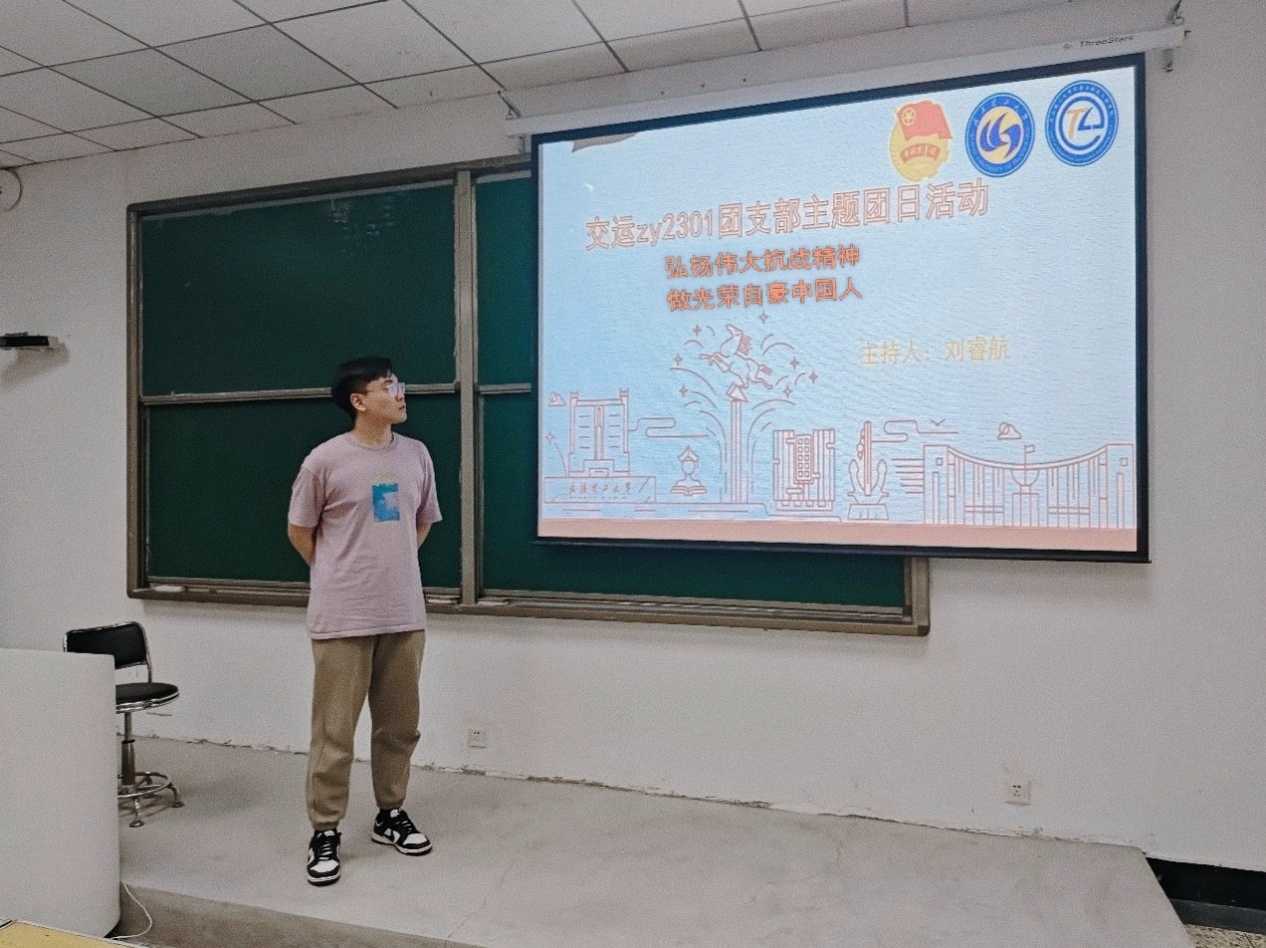 为引导团员青年铭记历史、缅怀先烈、珍爱和平、开创未来。交运zy2301团支部于9月24日晚6点,在航海楼202教室顺利开展“弘扬伟大抗战精神 做光荣自豪中国人——纪念中国人民抗日战争暨世界反法西斯战争胜利80周年”主题团日活动。本次活动由组织委员刘睿航主持,团支部全体成员参加。、