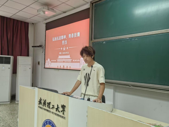 9月26日16时许,物管2402班全体团员齐聚航海楼109教室,由团支书季旭主持开展以 “弘扬抗战精神,青春挺膺担当” 为主题的团支部活动。本次活动旨在引导青年团员铭记抗战历史、传承红色基因,将抗战精神融入青春奋斗,明确新时代青年的责任与担当。