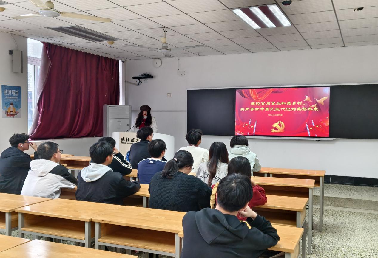 活动伊始,王佳同学结合生动的图文资料与政策解读视频,为同学们系统梳理了 “宜居宜业和美乡村” 的核心要义,并将国家关于乡村振兴的战略部署与中国式现代化的内在联系清晰呈现,让同学们深刻认识到,乡村作为中国式现代化的重要组成部分,其建设质量直接关系到全体人民共同富裕的实现进程。
