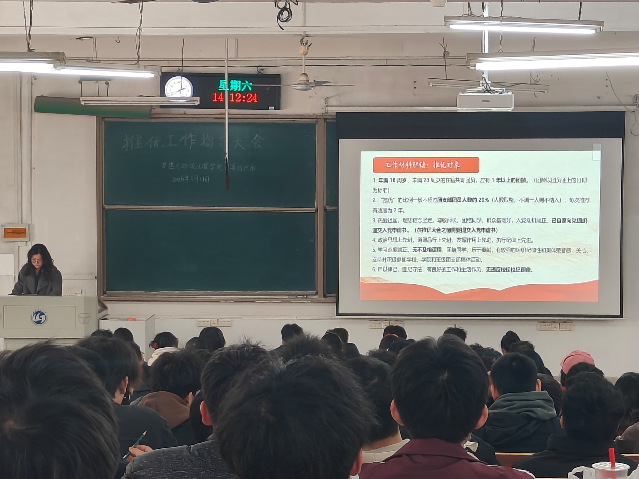 为深入贯彻落实共青团推优入党工作要求,规范基层团支部推优流程,明确推优标准,切实发挥共青团作为党的助手和后备军的作用,3月21日下午14:00,院团委组织部于东配楼101召开推优指导大会。各团支部书记、团支部委员及推优人员准时参会,大会由魏秋瑶主持。