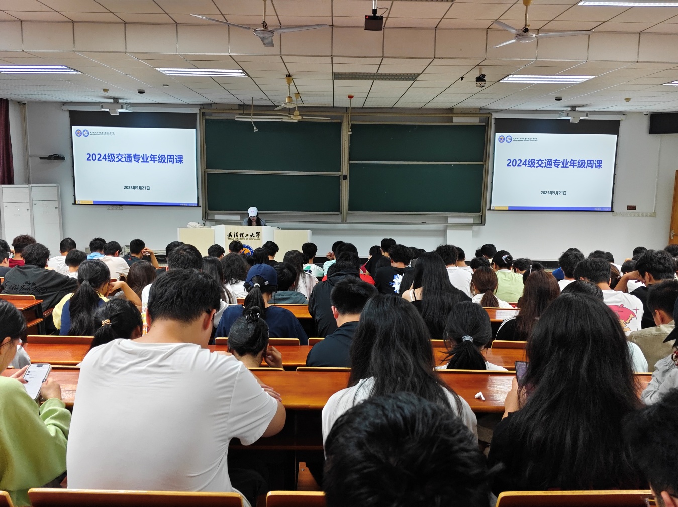 为明确近期工作重点,保障各项事务有序推进。2025年9月21日晚,2024级交通类第三周年级周会在航海楼111教室举行。会议由辅导员商好升老师主持,24级交通类专业全体同学到场参加。