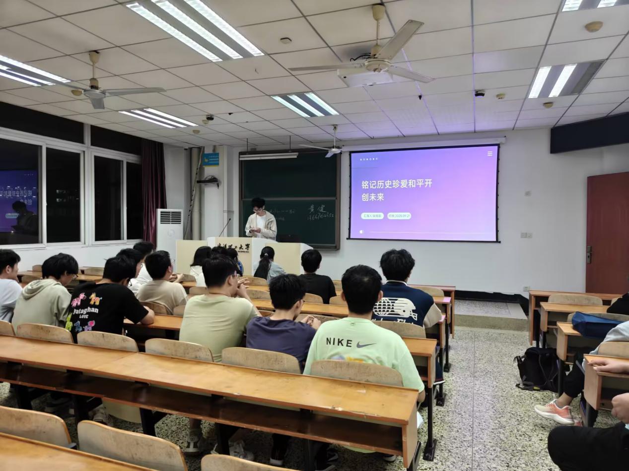 为引导团员青年铭记历史伤痕、缅怀革命先烈、厚植家国情怀,9月22日下午,交设2401团支部在航海楼307教室举办“铭记历史,珍爱和平,开创未来”主题团日活动。本次活动由团支部书记张煜劼主持,全体团员参加。