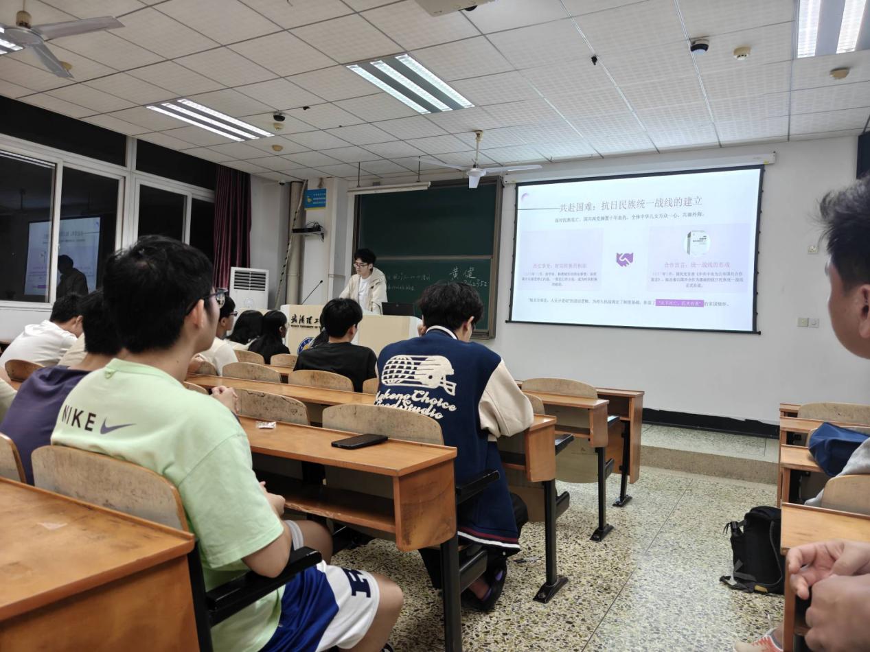 活动伊始,张煜劼带领团员回顾近代中国反抗外敌侵略,争取民族独立的关键历史节点,通过播放历史纪录片片段、展示抗日老照片等方式,直观呈现革命先烈的英勇事迹。他强调:“铭记历史不是延续仇恨,而是以史为鉴开创未来,珍惜和平的来之不易。”在讨论环节,团员们围绕“当代青年如何践行和平使命?”展开交流。大家各抒己见,达成“以史明志、以行践诺”的共识。在“寻访身边的和平守护者”环节,团员们积极分享身边事迹,比如社区退伍老兵宣讲国防知识等。活动最后,张煜劼发起倡议,号召团员学习红色文化、参与社会公益,切实将理论学习转化为实际行动。