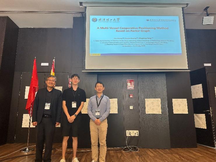在大会中,博士研究生熊鑫论文“A Multi-vessel Cooperative Positioning Method Based on Factor Graph”在“Autonomous Ships and Smart Shipping”分会场宣读。该研究提出了一种基于因子图的多船协同定位方法(CP-FG),以解决传统滤波框架在多船协同定位应用中存在的扩展性问题,引起了与会同行的积极关注与讨论。