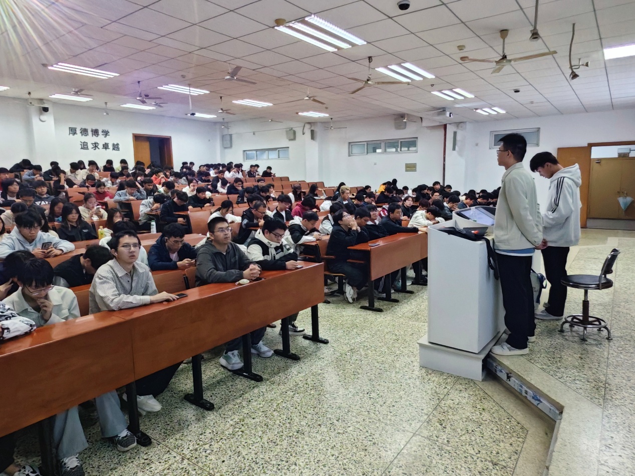 在明确学习与行为准则后,会议进入保研经验分享环节。来自道桥专业的保研学长结合自身经历,系统解读当前保研政策细节,梳理流程关键节点与注意事项。学长建议,同学们要提前关注保研政策动态变化,精准解读规则并结合自身优势准备;选择保研方向时,需理性分析个人兴趣与专业前景,避免功利化误区,为未来学业夯实基础。