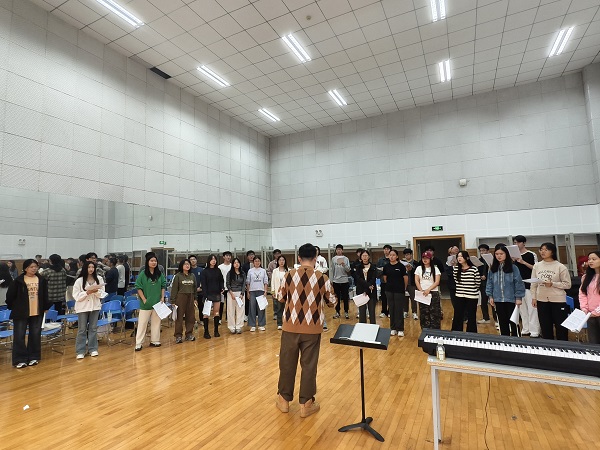 合唱团特邀燕冲老师担任艺术指导,针对新生占比达40%的团队特点,制定“分层递进”的训练方案。首周训练聚焦音乐基础能力构建,通过“柯达伊手势法”强化音准感知,运用“腹式呼吸训练器”规范气息运用。在基础练习曲《春之歌》的排练中,燕老师采用“分声部卡农式”教学,让团员在声部交织中体会和声魅力,原本参差不齐的音准问题得到显著改善。