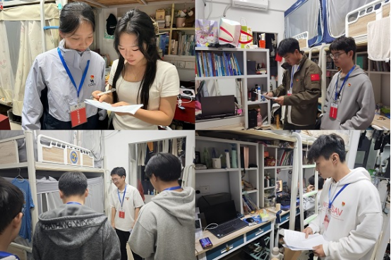 在工作开展过程中,党员同志们以高度的政治责任感和严谨细致的工作态度,深入学生宿舍,重点围绕寝室卫生状况、安全隐患、违章电器使用及违规饲养宠物等方面开展全面排查。党员们佩戴工作证和党徽,严格按照学生手册相关要求执行检查,同时结合结对团支部力量,耐心向学生讲解寝室安全的重要性,普及安全用电、设施维护等安全知识,切实提升学生安全意识和自我防范能力。