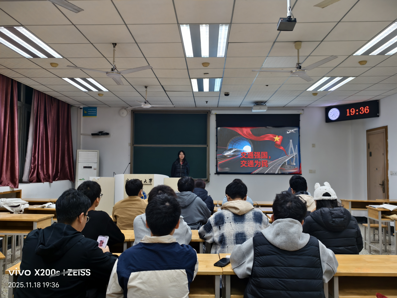 为深入学习贯彻交通强国战略理念,强化团员青年的责任担当,2025年12月2日晚7时,交通类2506团支部在航海楼509教室成功开展“交通强国 交通为民”理论讲堂活动。交通类2506团支部全体团员青年齐聚一堂,共同探寻交通事业发展的初心与使命,汲取奋进力量。