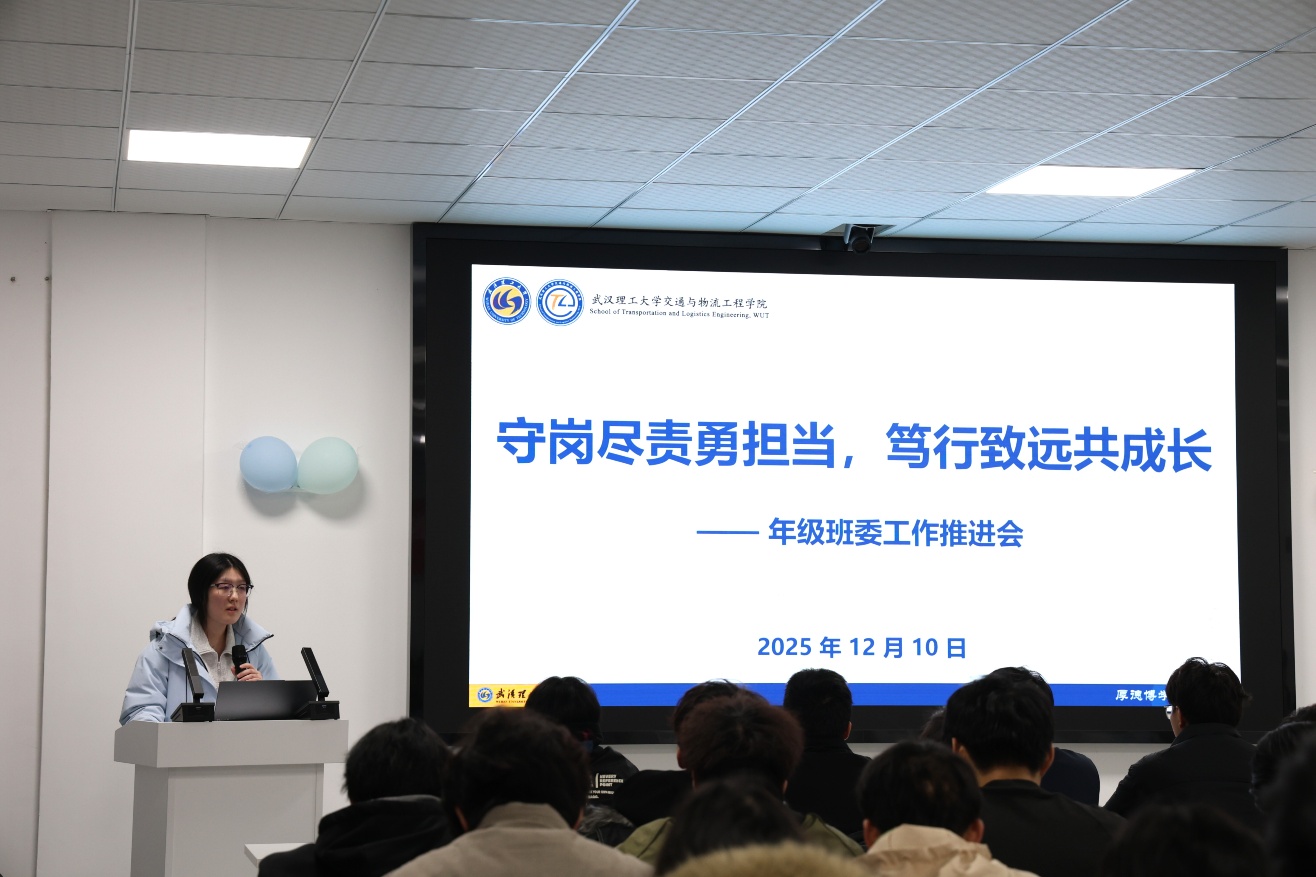 为切实提高年级学生干部工作积极性,推动年级各项事务扎实推进,2025年12月10日晚,2024级交通专业年级班委工作推进会在东配楼416教室顺利召开。会议由辅导员商好升老师主持,24级交通专业全体年级学生干部参加。