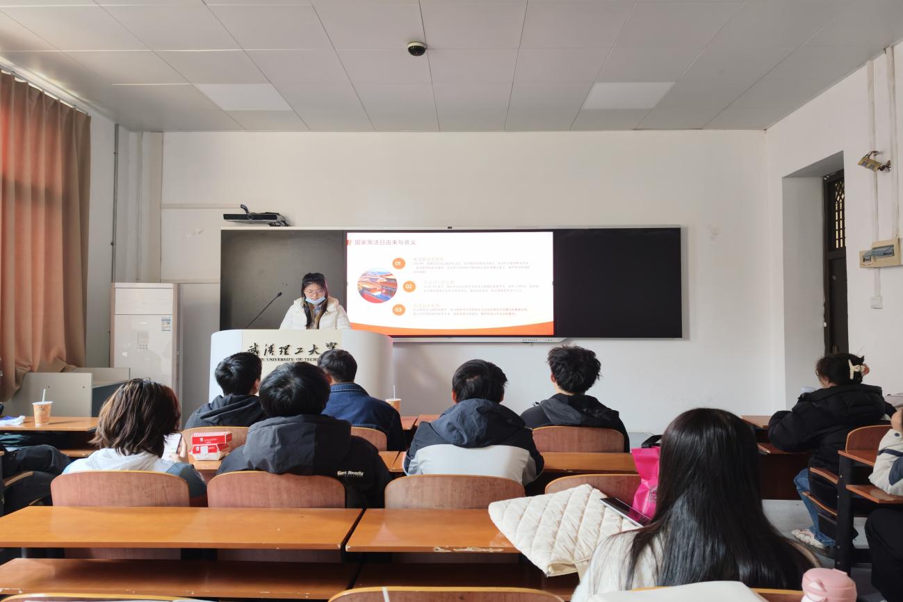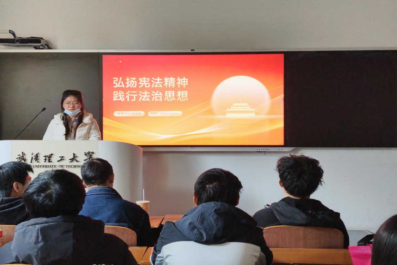 为深入学习宣传贯彻习近平法治思想,推动宪法精神在青年群体中落地生根,物管2301团支部于12月11日在主楼207教室开展“弘扬宪法精神,践行法治思想”主题团日活动,本次活动由团支书王月冉主持,团支部全体成员共同参加。