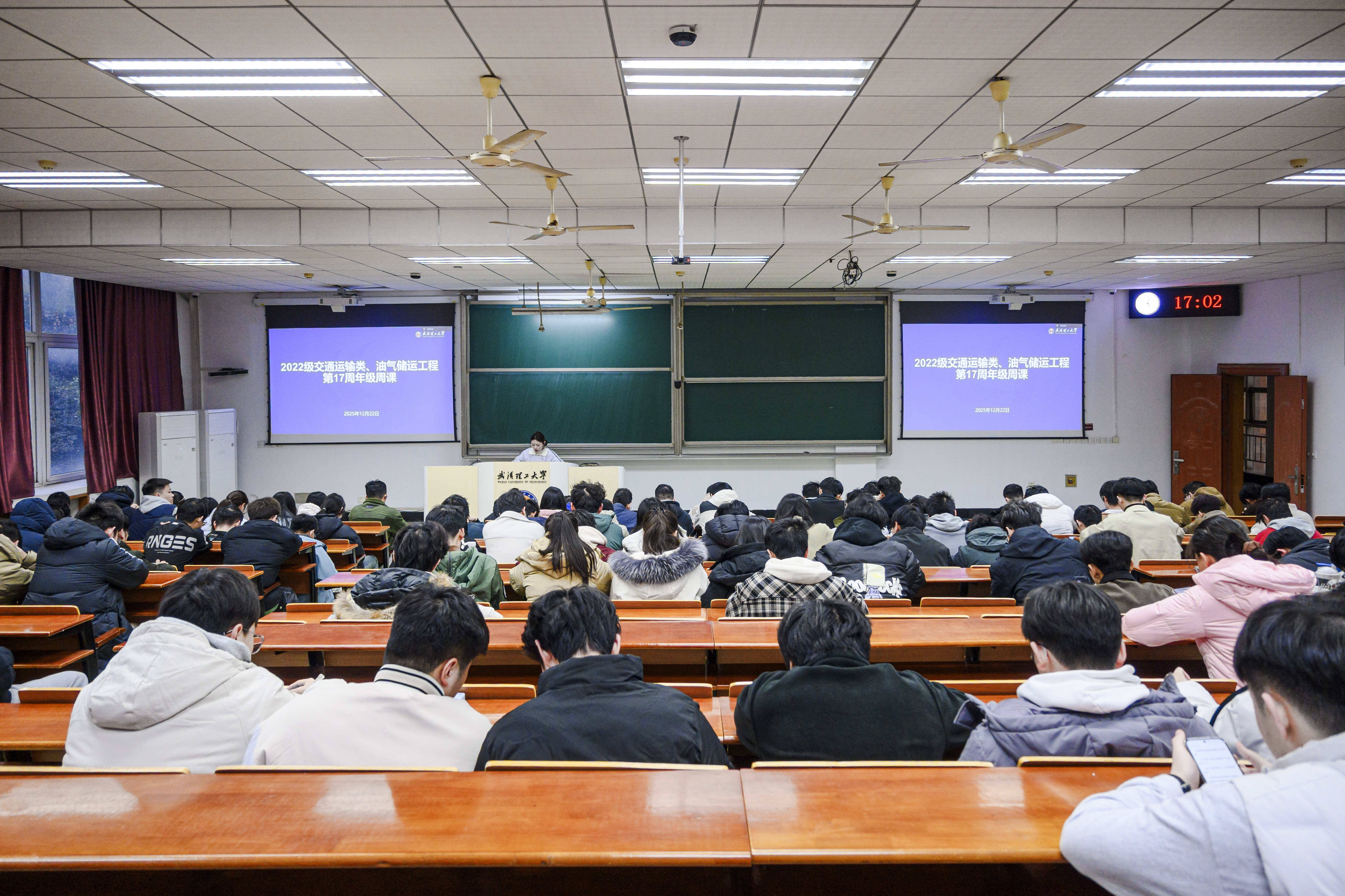 为帮助同学们在学期末调整心态、把握就业机会、明晰学业任务,平稳度过关键阶段,12月22日下午6点,2022级交通类与油气专业全体同学在航海楼209教室举行了第十七周年级周会。本次周课围绕考研后心态调适、就业机会把握、学业与日常管理等核心内容,为同学们提供针对性指导,全体同学参与,辅导员董泽源主持并开展讲解。
