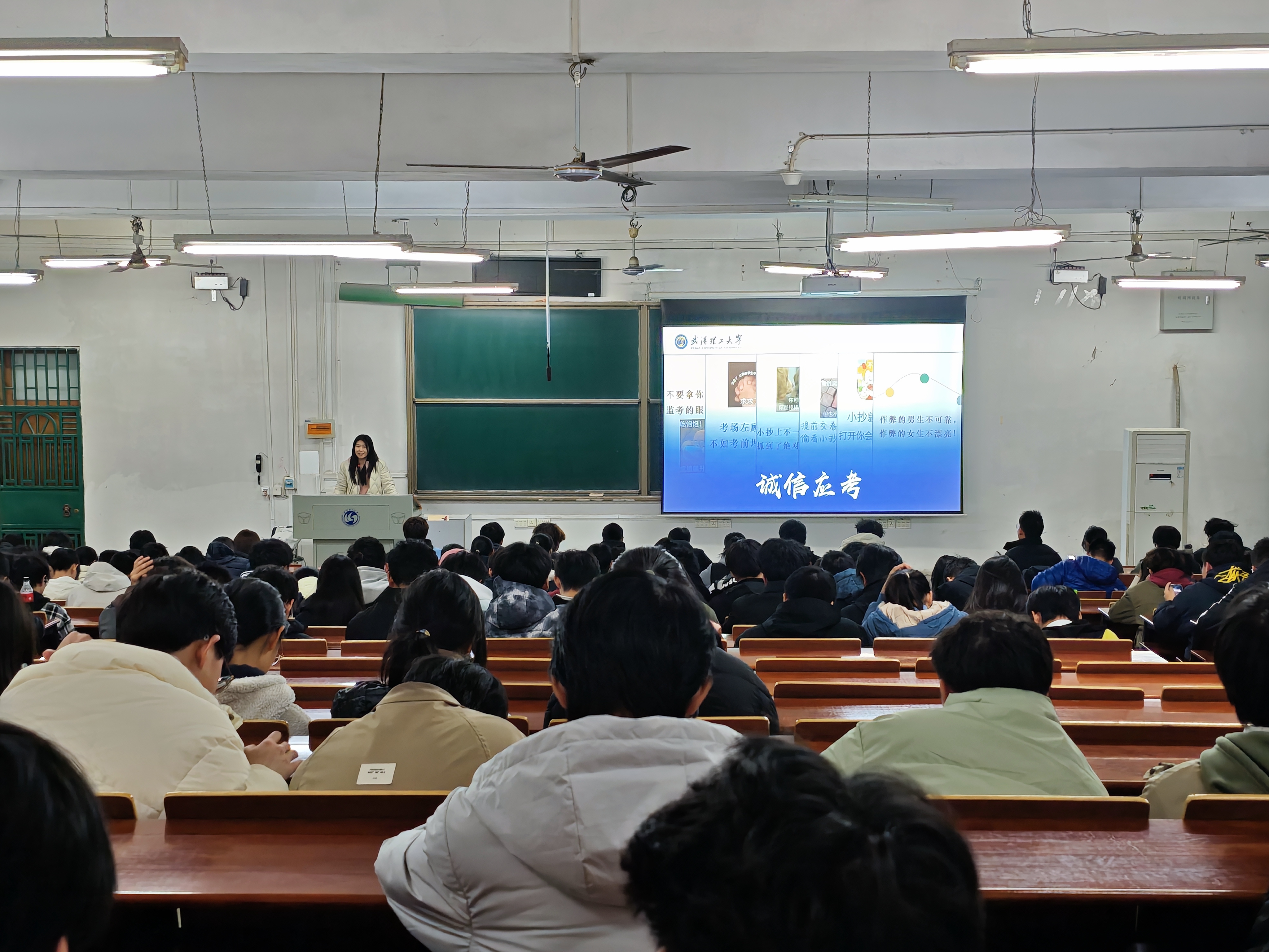 随后,周课第二环节,孙研老师以“诚信应考守底线”为主题,开展诚信考试教育。孙老师强调诚信是学术道德的基石,要求学生自觉遵守考试规则,不作弊、不抄袭;考试期间需严格恪守考场纪律,不携带违禁物品、不使用手机等电子设备;每位学生应独立完成考试,杜绝集体作弊等行为;同时要尊重监考老师与工作人员,配合考场管理。此外,还梳理了考试注意事项,提醒学生及时查询考试时间、科目与地点,并分享了和规律作息、适量运动等缓解考试焦虑的实用方法。