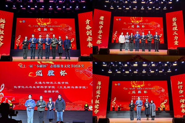 12月29日晚,在学校2026年“梦想之夜”新年音乐会上,学院凭借卓越的组织能力和学子们的突出表现,历史性包揽学校团委“四大杯”文化节团体奖荣誉。其中,“奉献杯”志愿服务文化节与“知行杯”实践育人文化节均以团体总分第2荣获“优胜杯”,“创新杯”科技文化节与“金秋杯”艺术文化节则斩获“进取杯”,创下学院近年来最好成绩。