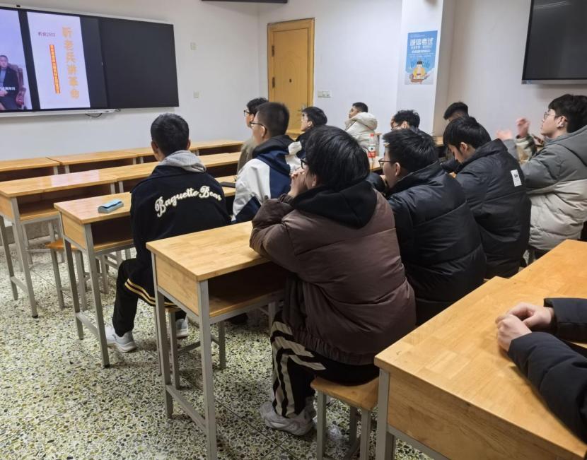 2026年1月21日,机设2503班易博文同学利用返乡时机,采访了身为退役军人的父亲——一位坚守初心、践行使命的革命老兵,并精心拍摄制作采访Vlog,于3月1日在班级开展“采访革命老兵,传承红色基因”主题分享交流活动,带领同学们聆听军旅故事,感悟革命精神。