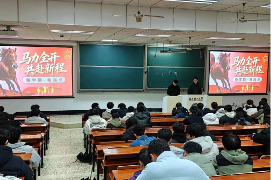 为帮助同学们快速调整状态、明确新学期目标,传承中华优秀传统文化,2026年3月1日,辅导员田纪伟老师在航海楼107召开年级周课,围绕丙午马年文化解读、2026年春晚回顾、开学收心教育、新春祝福寄语四大主题开展专题教育,2024级物流类、道桥专业全体同学参会。