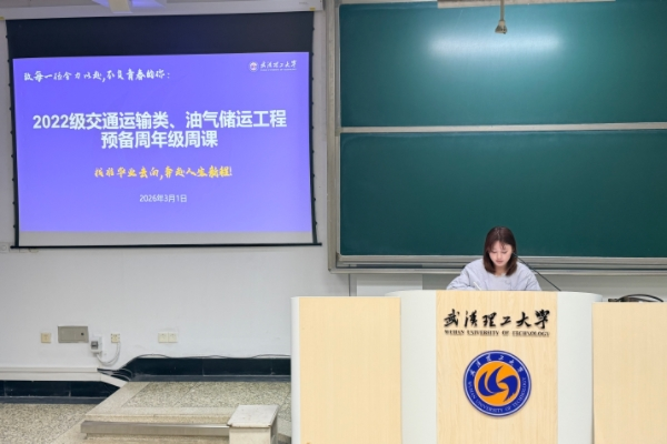 为助力同学们明确毕业去向、科学规划未来,2022级交通运输类、油气储运工程预备周年级周课于2026年3月1日在航海楼209教室顺利举行。本次周课聚焦考研、就业、考公等核心议题,为同学们提供针对性指导,由辅导员董泽源主持,2022级交通类、油气类全体学生参加。