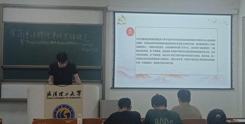 为深入学习贯彻习近平总书记重要讲话精神,全面落实全国教育大会决策部署,进一步凝聚思想共识、激发奋进力量,切实推动教育强国建设在基层落地生根,本科四党支部于9月26日组织开展了以“学习讲话精神,争做先锋模范”为主题的主题党日活动。本次活动由贾铭喆主持,陶晓雪和胡智星主讲,支部全体人员参加。