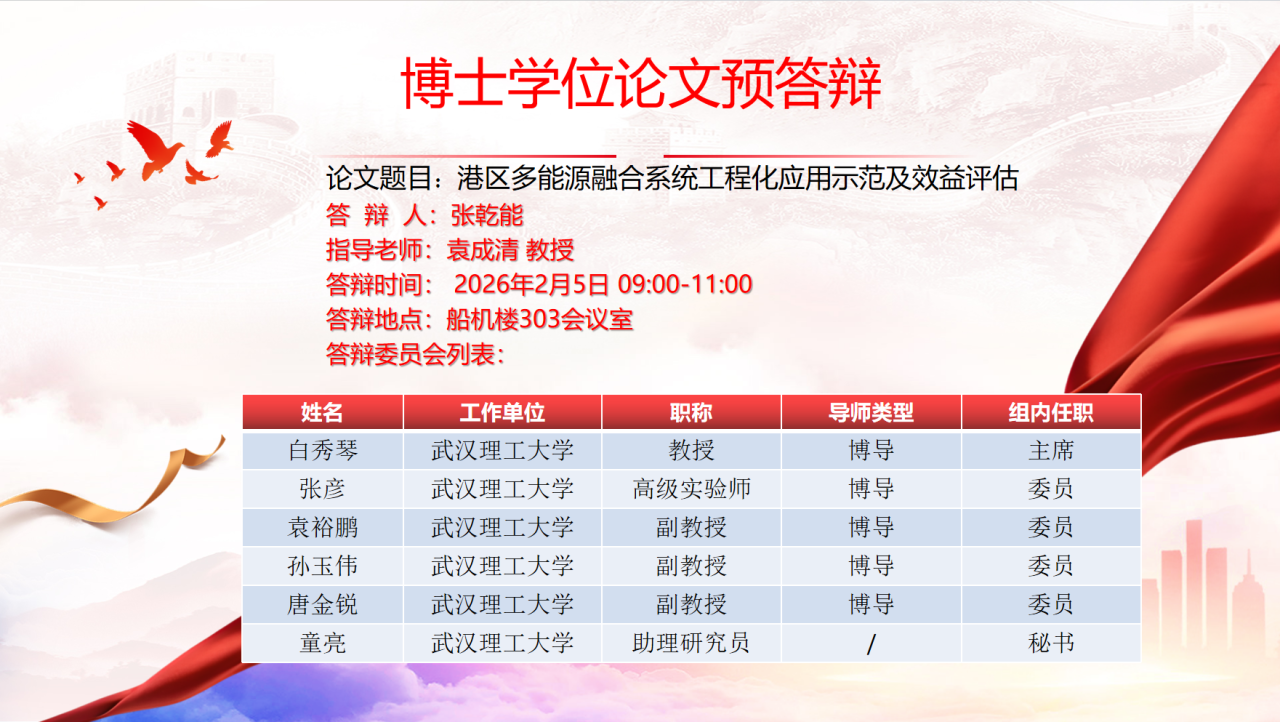 博士学位论文预答辩公告
