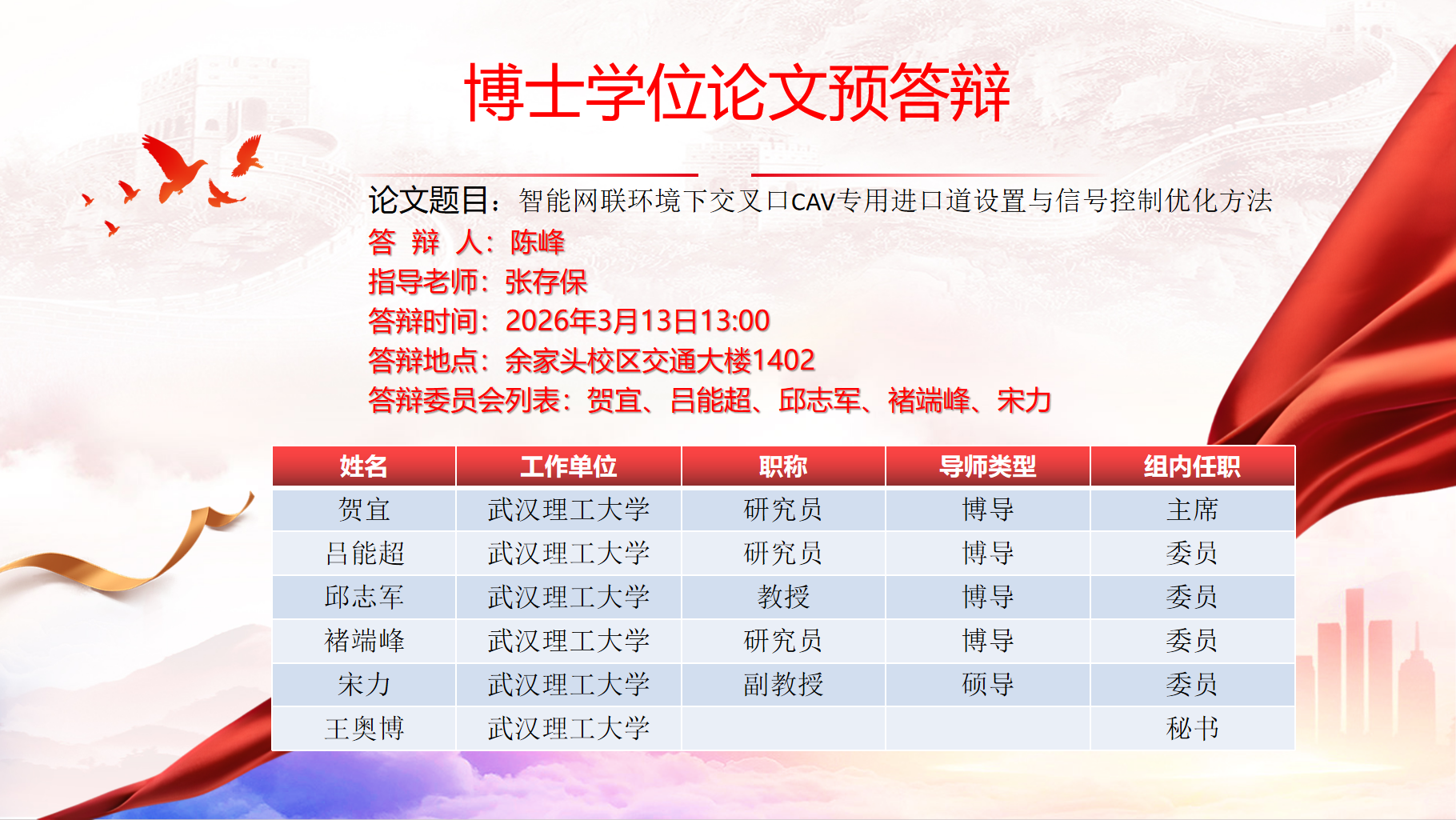 博士学位论文预答辩公告